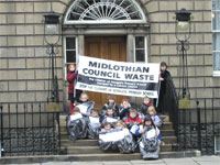 Midlothian Council WasteOn the 12th March, fourteen pupils of Howgate Primary School delivered a personal invite to Jack McConnell at Bute House, Edinburgh. The First Minister was asked if he would like to visit the school to see why Howgate Primary should not be closed - they are still awaiting a response.
