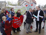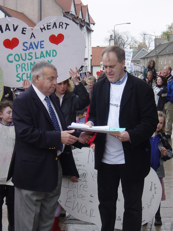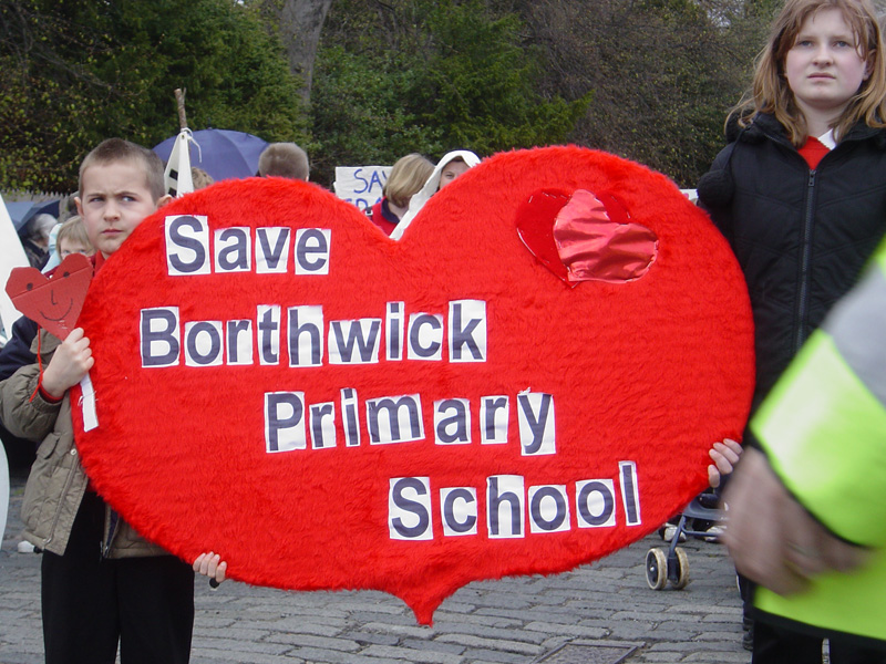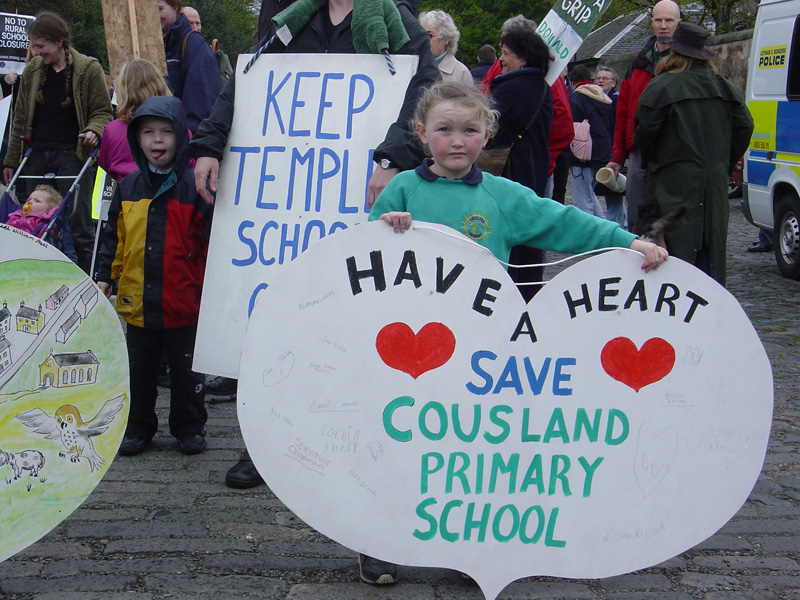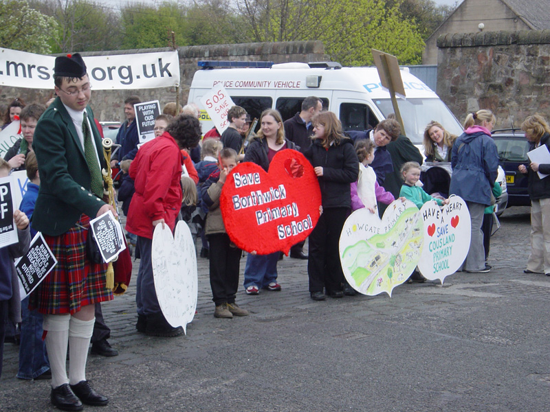 MRSAG March/Rally - Save Our Village SchoolsThe Midlothian Rural Schools Action Group march and rally took place today (23 April) in Dalkeith to show the strength of feeling in our communities against Midlothian Council's primary school closures. Around 600 people supported the march from Dalkeith Country Park, through Dalkeith to Kings Park where we held a short rally. On the way, children from the schools stopped at Midlothian Council's offices and presented Sam Campbell, Provost, with decorated heart banners. Richard Lock, from MRSAG, also supplied the council with a copy of the petition recently presented to the Scottish Parliament's Public Petitions Committee. The Scotsman published an article on the march in the 24th April edition. Thanks go out to everyone who helped prepare and take part in the event. Fiona Hyslop, MSP for the Lothians, sent us the following letter:Please pass on my support for your march and rally today - I am sure you will be pleased to know the subject of rural school closures will be on the Parliament's Education Committee agenda this Wednesday morning . I can't be with you as I am in Aberdeen at an SNP special conference where Midlothian Constituency and I have presented a topical motion in support of your campaign which I hope may have the chance to be debated live in the televised coverage - the motion is as follows 'SNP Conference recognises the vital community role that rural schools play in the sustainability of rural communities and sends a message of support to the Midlothian Rural Schools Action Group for their march and rally today Friday 23rd April in Dalkeith in defence of the 5 rural schools facing closure as part of the PPP proposals being pursued by Midlothian Council and extends its support to parents in the Borders who are also resisting 11 rural school closures and mergers which form part of Borders council schools PPP programme. Conference expresses its concern at the recent rapid increase in the number of proposed rural school closures across Scotland and calls on the Scottish Executive to immediately establish the principle of presumption against rural school closures and to publish the long awaited revised code of practice as a matter of urgency to ensure that any decisions are made on educational grounds and with examination of rural community sustainability and not simply on the financial gains to be made for the councils concerned.' Your demonstration today is an expression of people, parent and pupil power - what we need now from the Midlothian Council is a considered response to this vital education issue based on the 3 R's Respect , responsiveness and re-appraisal. Good luck and best wishes for a successful outcome for all the small communities of Midlothian. Fiona Hyslop SNP MSP for Lothians Colin Beattie, Midlothian SNP SpokespersonColin sent us an email advising of the support shown at the SNP Spring Conference. Photos from the MRSAG march and rally:Photos from the event are available for download by clicking on them below. The media and press are free to use these as required. Higher quality images can be provided if required, please get in touch. See the results from the annual School Pigeon race here. Last Updated : 30 March 2005 |