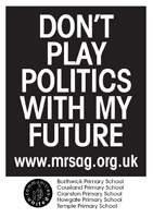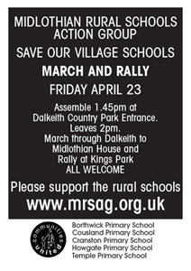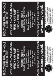 MRSAG PostersVarious posters have been produced to support our campaign. These can be downloaded in PDF format by clicking on the pictures below, and are in A4 format. Posters for the upcoming march and rally in Dalkeith, 23rd April 2004, (file size=60kb each).